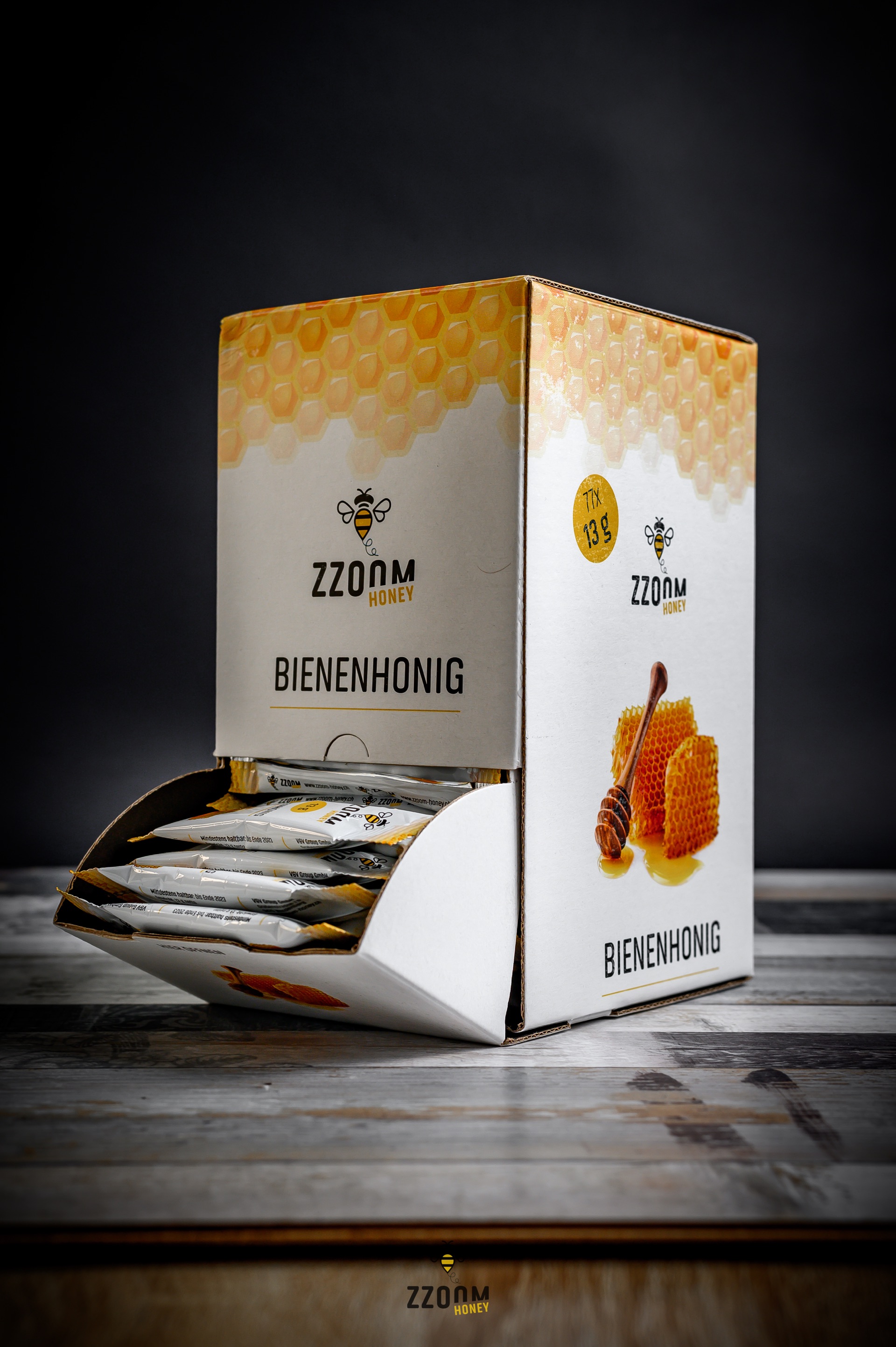 Für das gesunde abwechslungsreiche Frühstück empfehlen wir ZZoom Honig-Sticks. Bestes Naturprodukt in der genau richtigen Portion! Mit den Portions-Sticks können Sie einfach & kompakt den schnellen, klebefreien Honig-Genuss anbieten.